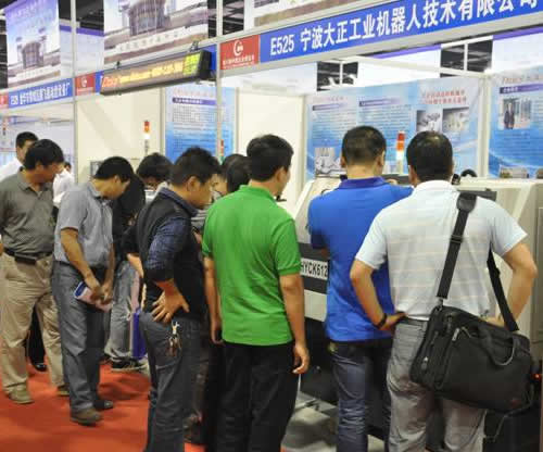 2012年9月26日-28日, 公司總經理攜全體銷售人員參加在浙江永康國際會展中心舉行的第17屆中國五金博覽會。公司的“數控車床自動送料機械手”及“內藏式送料機械手”是本次參加展會的兩款主要出展設備。展會現場,我公司的這兩款機械手受到各個領域人士的關注。技術人員耐心地為每一位前來觀看和咨詢的客人介紹,并且對機械手進行現場演示,與參展客商關于自動化技術方面進行深入地探討。我公司的這兩款機械手以靈巧、智能等優點深受廣大參展客商的好評。