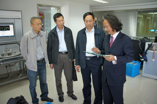 4月6日下午,知聯會會長、區人民鎮府副區長劉文科,知聯會會長、區委統戰部常務副部長牟劍鳴一行到我公司走訪調研,圖為戴翔總經理向二位領導介紹公司汽車專用軟件及工業機器人研發情況。